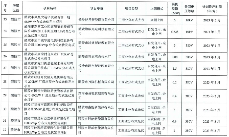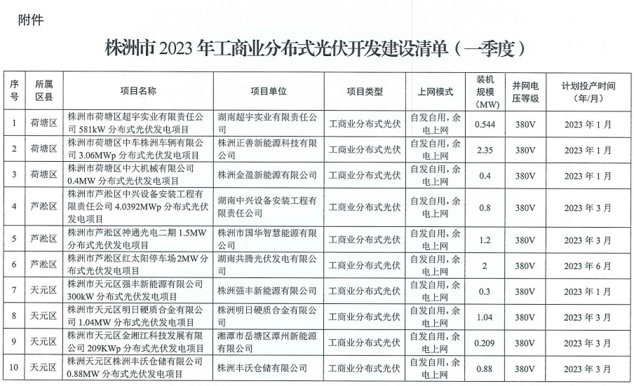 153.341MW!湖南株洲發(fā)布2023年一季度工商業(yè)分布式光伏清單