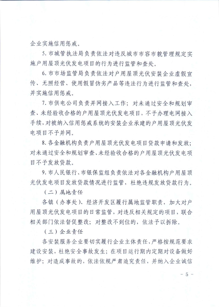 屋頂光伏在組件安裝完成后,業(yè)主需向?qū)俚劓?zhèn)、經(jīng)濟開發(fā)區(qū)提出驗收申請,然后會同市發(fā)改局、自然資源和規(guī)劃局、住建局、市場監(jiān)管局、城管執(zhí)法局、應(yīng)急管理局、供電公司等部門聯(lián)合驗收并出具驗收意見。