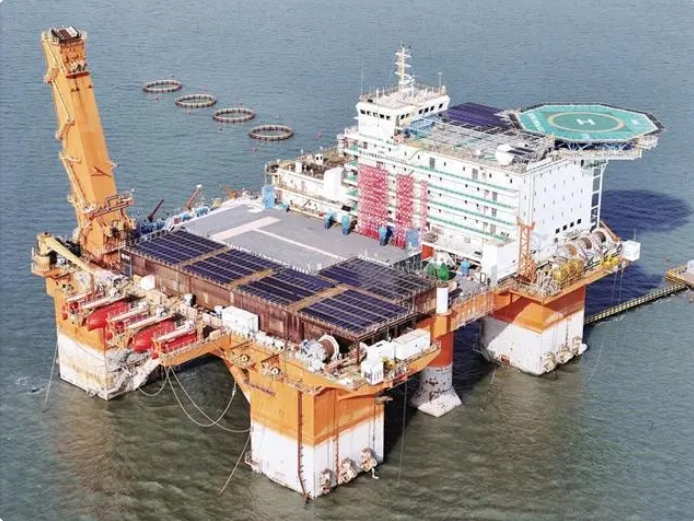 實(shí)證基地位于煙臺(tái)高新區(qū)四十里灣海域,由一座半潛式海上生活平臺(tái)改造而成,可克服風(fēng)、浪、流的循環(huán)載荷和高鹽霧等復(fù)雜海上工況,對(duì)水位、結(jié)構(gòu)受力、光照強(qiáng)度、發(fā)電量等數(shù)十項(xiàng)數(shù)據(jù)和光伏平臺(tái)項(xiàng)目的發(fā)電效率、新材料防腐性、抗風(fēng)浪能力等關(guān)鍵因素進(jìn)行綜合論證。