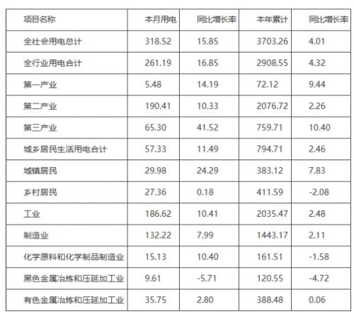 (一)全社會用電量情況。全省全社會用電量318.52億千瓦時(shí),同比增加15.85%;累計(jì)用電量3703.26億千瓦時(shí),同比增加4.01%。