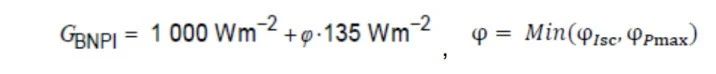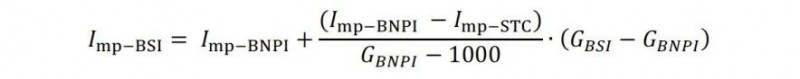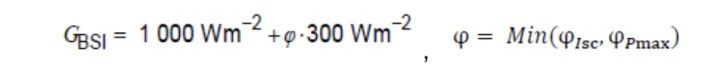 增加雙面組件的熱循環(huán)測試注入的電流要求,可根據(jù)電流與輻照度的線性關(guān)系,按照如下公式計算: