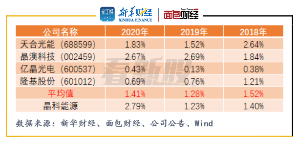 圖4:2018至2020年晶科能源與可比公司財務費用率