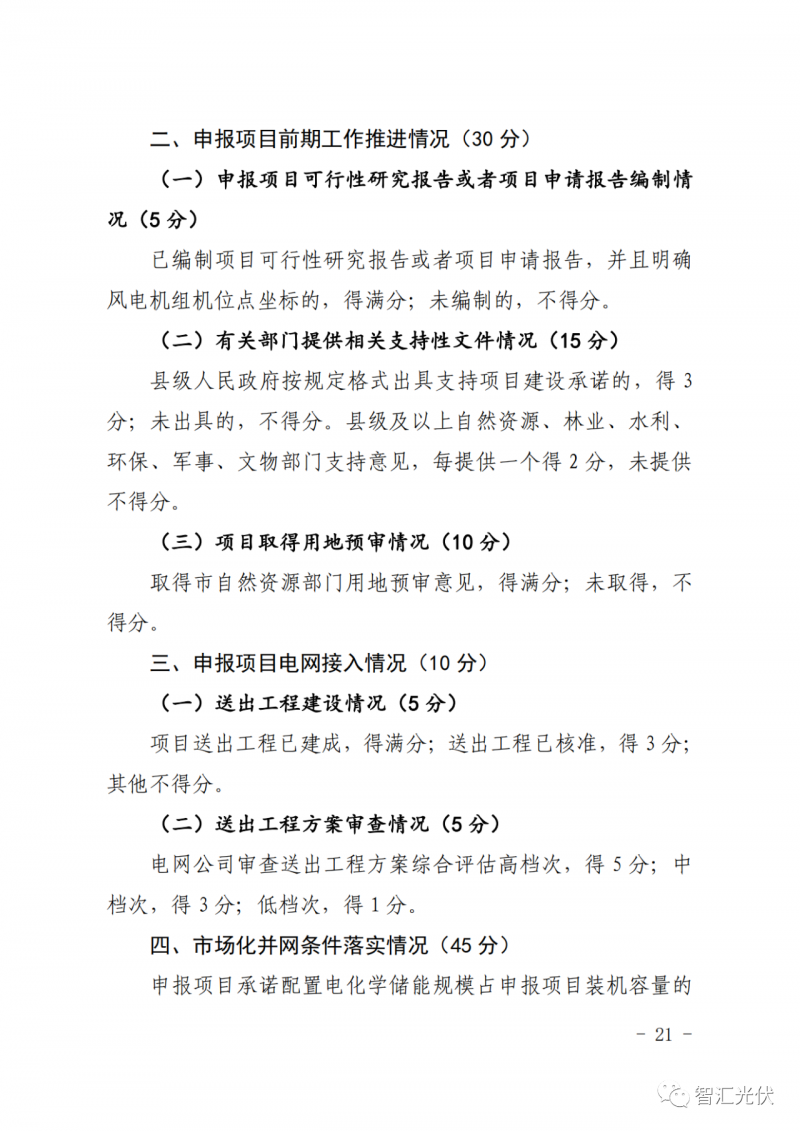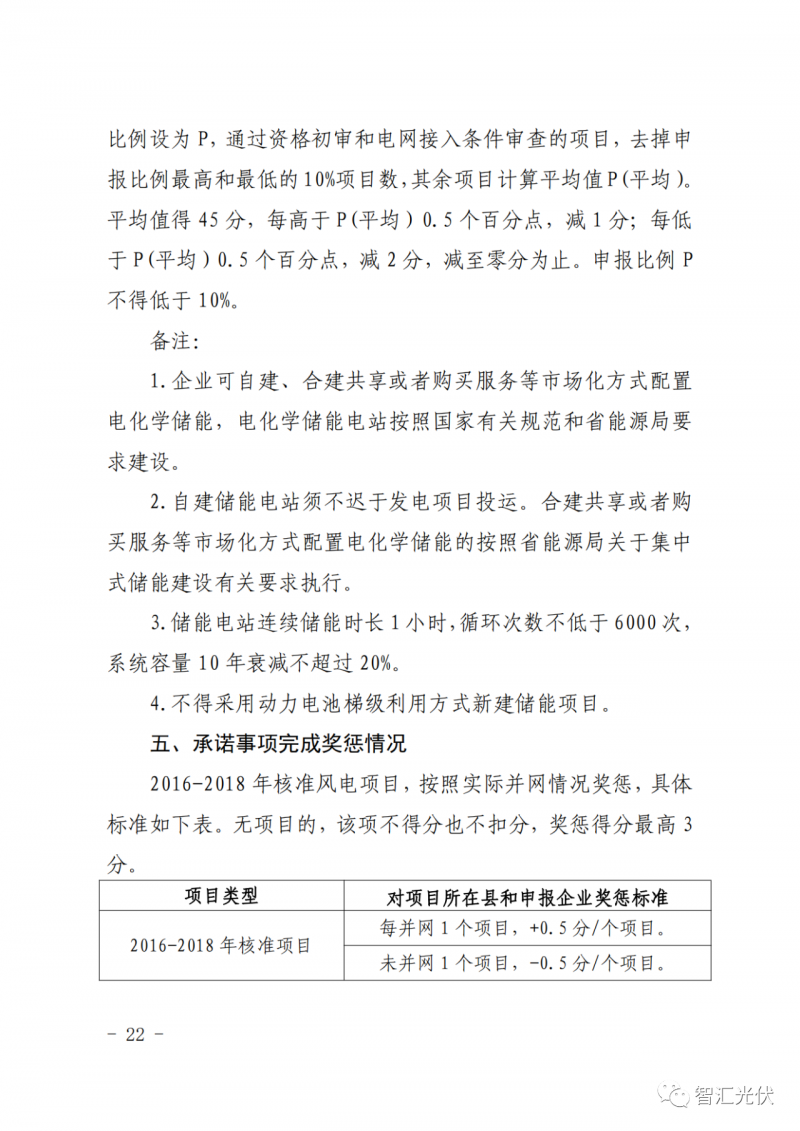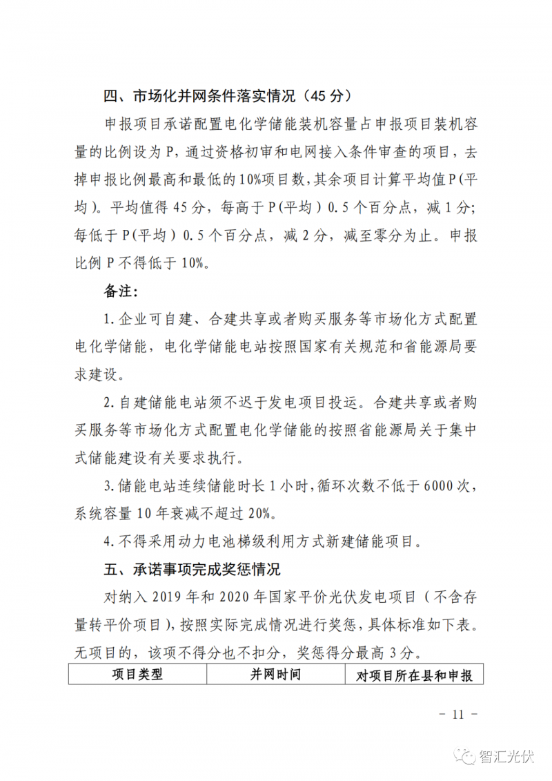 對(duì)于保障性規(guī)模,競(jìng)爭(zhēng)性配置中未要求競(jìng)電價(jià)、配置儲(chǔ)能項(xiàng)為45分,要求1小時(shí)、6000次。
