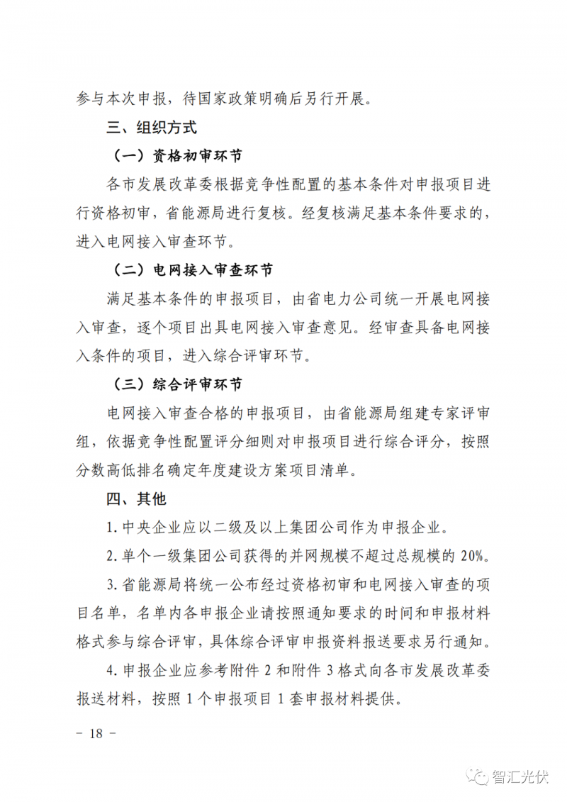 4)光伏項(xiàng)目:?jiǎn)蝹€(gè)申報(bào)項(xiàng)目規(guī)模原則上不超過(guò) 20 萬(wàn)千瓦。單個(gè)一級(jí)集團(tuán)公司第一次獲得的并網(wǎng)規(guī)模不超過(guò)該次競(jìng)爭(zhēng)性配置規(guī)模的 20%,兩次累加獲得的并網(wǎng)規(guī)模不超過(guò)總規(guī)模的20%。