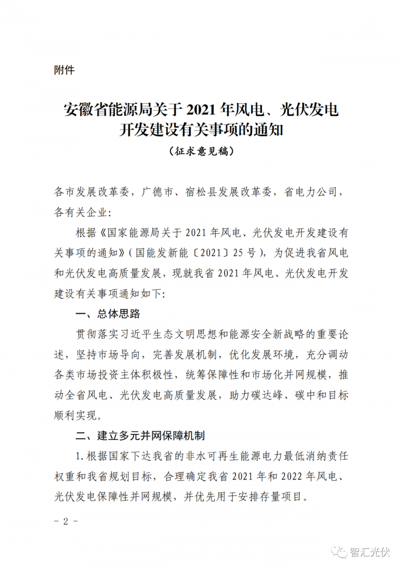 近日,安徽省能源局就《關(guān)于2021年風(fēng)電、光伏發(fā)電開發(fā)建設(shè)有關(guān)事項(xiàng)的通知(征求意見稿))》公開征求意見。