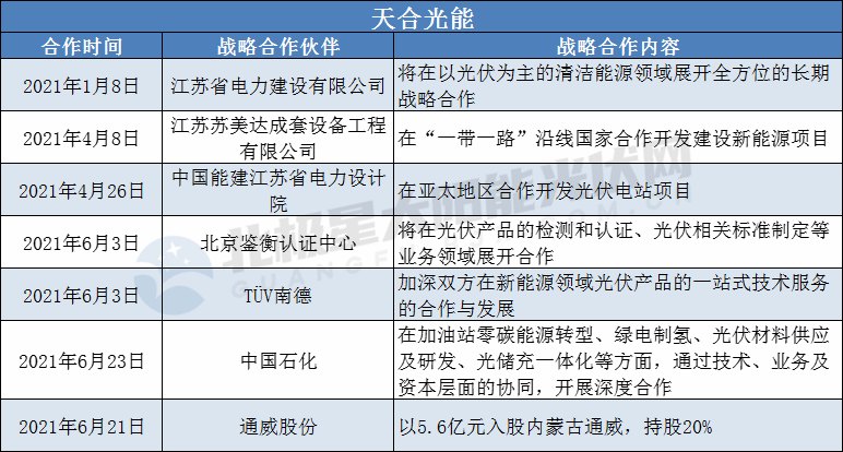 2021年1-7月部分光伏企業(yè)戰(zhàn)略合作簽約如下: