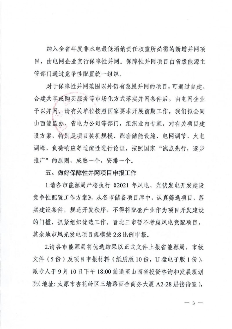 8月26日,山西省能源局印發(fā)《關(guān)于做好2021年風(fēng)電、光伏發(fā)電開發(fā)建設(shè)有關(guān)事項(xiàng)的通知》。通知中對(duì)山西省的2021年的光伏、風(fēng)電工作做了規(guī)劃。