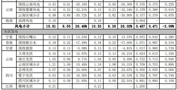 注: 1、國(guó)投電力于 2020年1月完成了對(duì)定邊光伏10 萬(wàn)千瓦的收購(gòu)。
