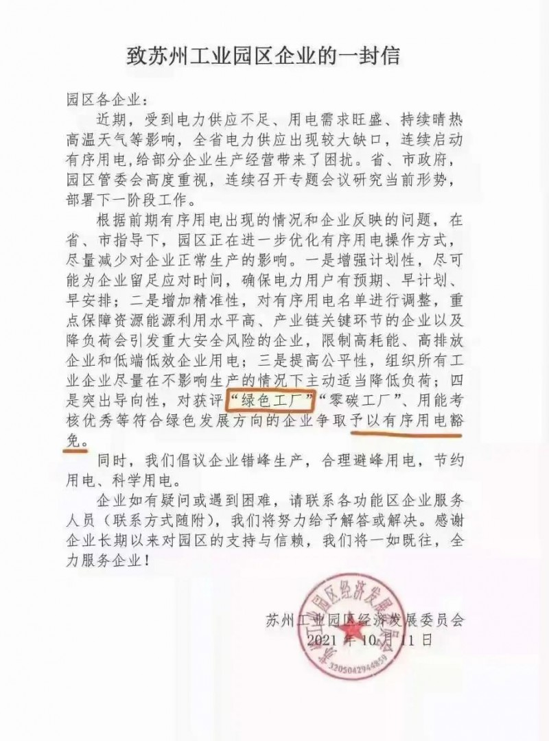 近期受到電力供應(yīng)不足、用電需求旺盛、持續(xù)晴熱高溫天氣等影響,電力供應(yīng)出現(xiàn)較大缺口,連續(xù)啟動(dòng)有序用電,給部分企業(yè)生產(chǎn)經(jīng)營(yíng)帶來(lái)了困擾。在突出導(dǎo)向性中,提出對(duì)獲評(píng)“綠色工廠”“零碳工廠”、用能考核優(yōu)秀等符合綠色發(fā)展方向的企業(yè)爭(zhēng)取予以有序用電豁免。