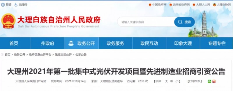 大理州2021年第一批集中式光伏開(kāi)發(fā)項(xiàng)目暨先進(jìn)制造業(yè)招商引資公告