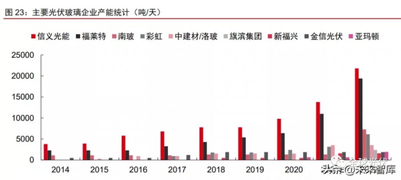 2021/2022年光伏玻璃開啟集中擴(kuò)產(chǎn)潮,行業(yè)產(chǎn)能增量明顯。根據(jù)主要光伏玻璃廠商建設(shè)規(guī)劃,我們測(cè)算2021/2022年光伏玻璃行業(yè)新增日熔量或分別達(dá)1.9和2.5萬(wàn)噸/天,產(chǎn)能進(jìn)入集中投放期。其中,2022年除了信義光能和福萊特兩家頭部廠商有近1.5萬(wàn)噸/天新產(chǎn)能陸續(xù)投放外,還包括南玻、彩虹、淇濱等二線企業(yè)和新進(jìn)入者大舉擴(kuò)產(chǎn)。考慮到新產(chǎn)線從點(diǎn)火到穩(wěn)定出貨一般需經(jīng)歷3-4個(gè)月爬坡期,尤其是新進(jìn)入者爬坡期可能更長(zhǎng),實(shí)際產(chǎn)出增量將打折扣,預(yù)計(jì)2021/22年行業(yè)有效日熔量增量約為1.4/2萬(wàn)噸,整體增幅仍然較大。