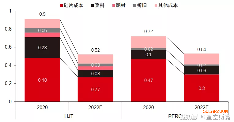 圖片:預(yù)計(jì)到 2022年HJT技術(shù)成本下降明顯