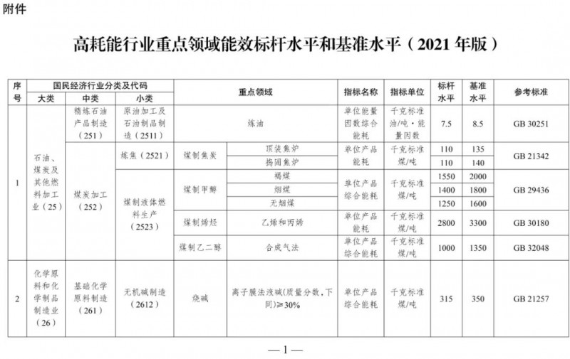 附件:高耗能行業(yè)重點(diǎn)領(lǐng)域能效標(biāo)桿水平和基準(zhǔn)水平(2021年版)