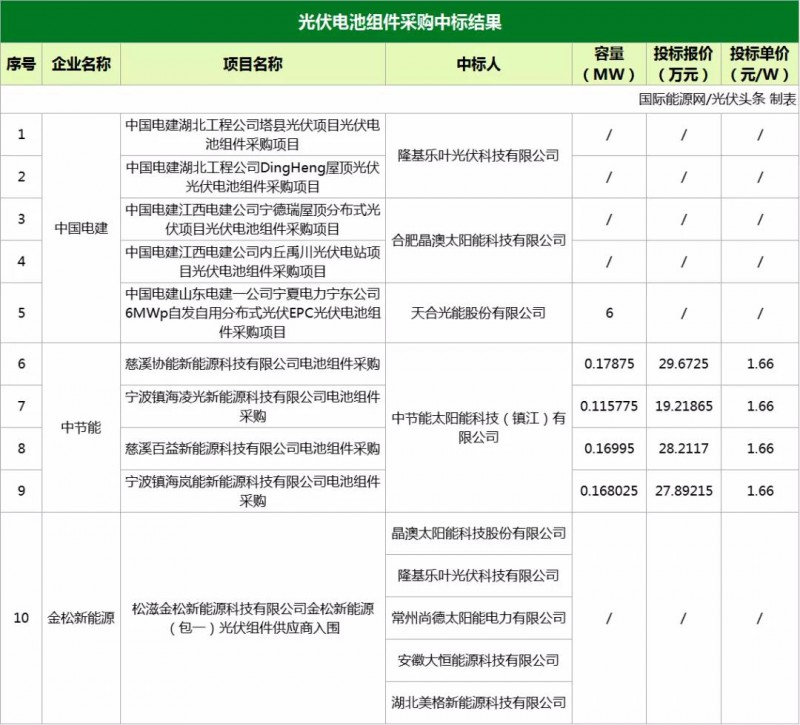 光伏電池組件中標(biāo)項(xiàng)目有10個(gè)。