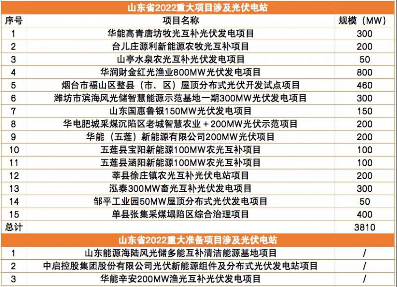 原標(biāo)題:3.8GW、15個(gè)光伏項(xiàng)目,山東下發(fā)2022年重點(diǎn)項(xiàng)目清單