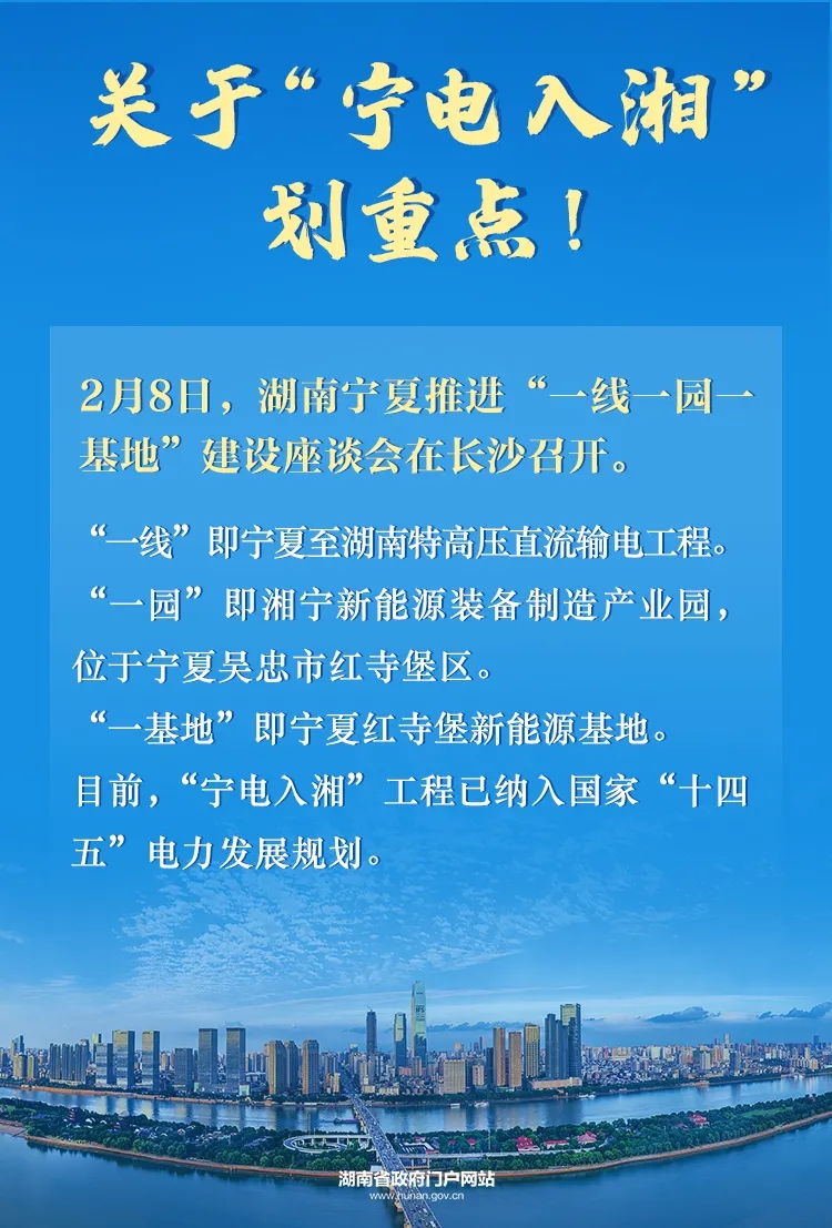 2月8日,湖南省政府與寧夏回族自治區(qū)政府在長沙舉行座談會,共商加快推進“一線一園一基地”建設。“一線”為寧夏至湖南特高壓直流輸電工程,“一園”為湘寧新能源裝備制造產業(yè)園,“一基地”為寧夏紅堡寺新能源基地。
