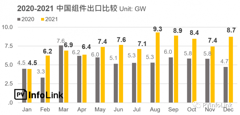 下半年進(jìn)入了傳統(tǒng)的市場(chǎng)旺季,但是受到產(chǎn)業(yè)上游的瓶頸,造成整體供應(yīng)鏈價(jià)格上升,以及中國(guó)的能耗政策影響,進(jìn)一步推升了組件的價(jià)格,高昂的海運(yùn)價(jià)格也增加了廠家的負(fù)擔(dān),終端在獲利考慮下需求暫緩,采取了包括延后發(fā)貨與重新議價(jià)等措施,導(dǎo)致了傳統(tǒng)旺季的下半年,中國(guó)組件出口卻呈現(xiàn)了下降的趨勢(shì)。