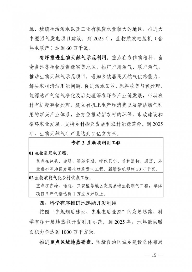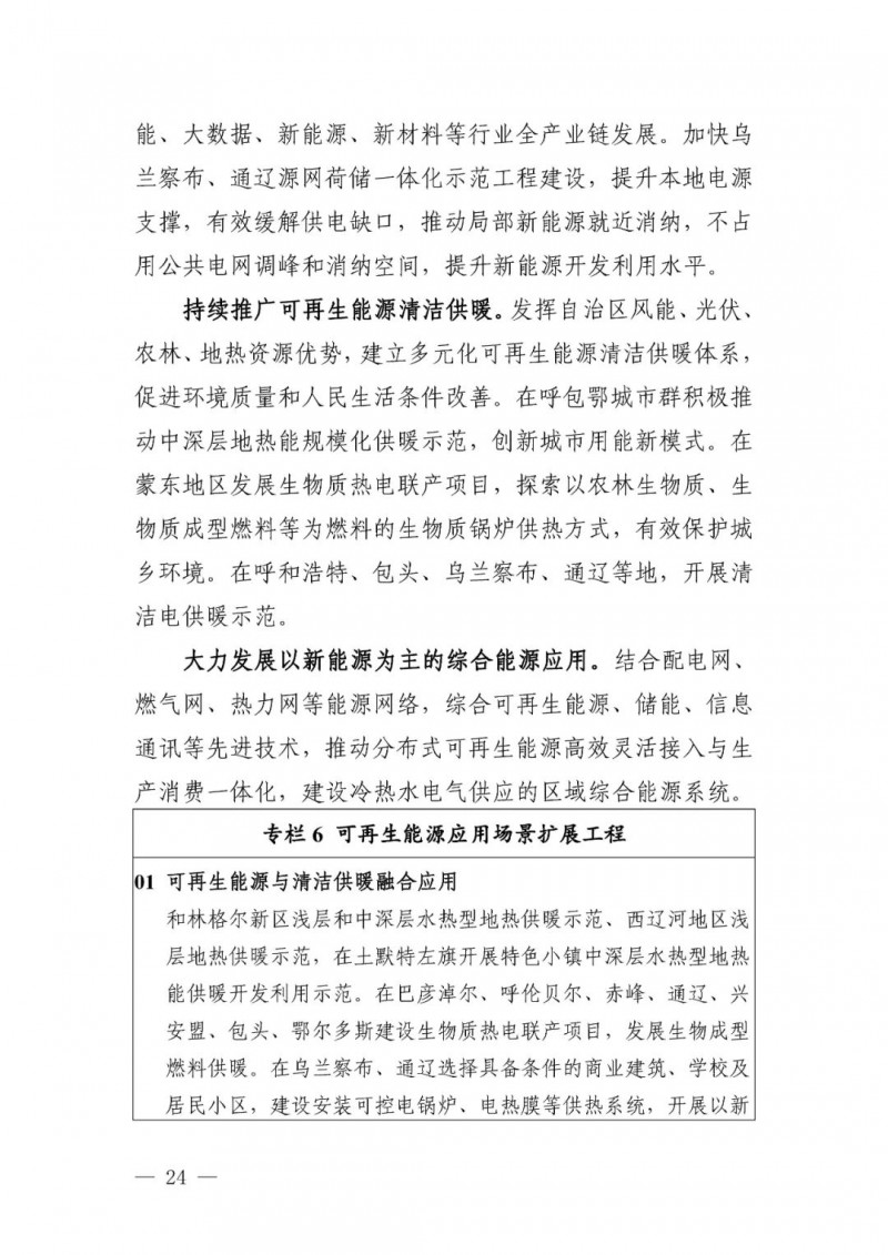 可再生能源供熱目標(biāo)。自治區(qū)地?zé)崮?、生物質(zhì)能、 太陽(yáng)能供暖和新能源電力供暖利用規(guī)模顯著提升。全區(qū)可再生能源供暖面積達(dá)到 3600 萬平方米,“十四五”期間新增2500 萬平方米。