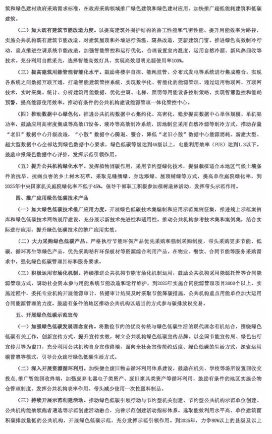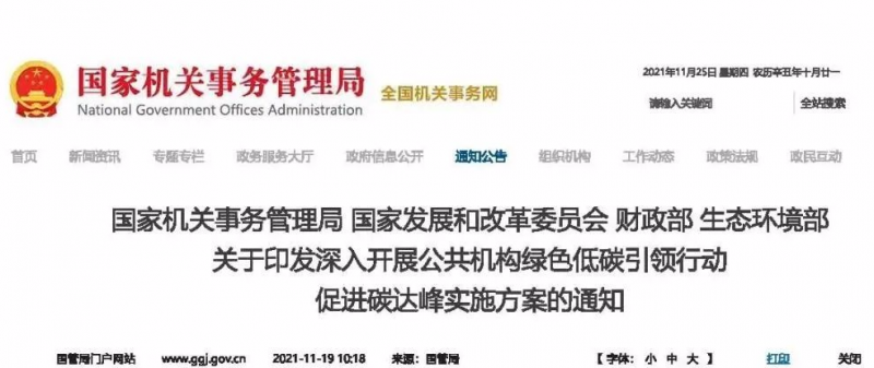 國家機(jī)關(guān)事務(wù)管理局、國家發(fā)改委、財(cái)政部、生態(tài)環(huán)境部發(fā)布關(guān)于印發(fā)深入開展公共機(jī)構(gòu)綠色低碳引領(lǐng)行動、促進(jìn)碳達(dá)峰實(shí)施方案的通知。