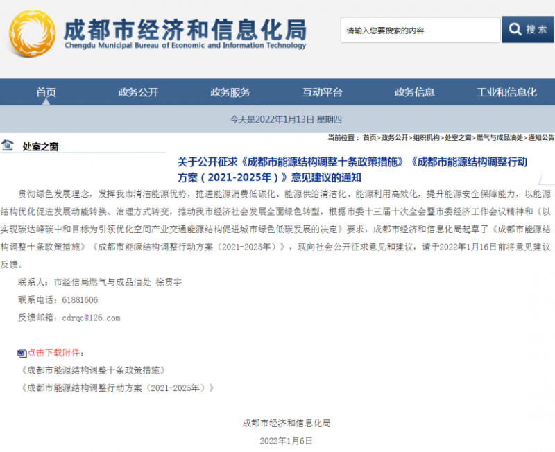 1月10日,成都市經(jīng)濟(jì)和信息化局發(fā)布關(guān)于公開征求《成都市能源結(jié)構(gòu)調(diào)整十條政策措施》《成都市能源結(jié)構(gòu)調(diào)整行動方案(2021-2025年)》意見建議的通知。支持先進(jìn)儲能發(fā)展應(yīng)用。積極推進(jìn)電源、電網(wǎng)、用戶側(cè)配套建設(shè)儲能示范建設(shè),按儲能設(shè)施規(guī)模200元/千瓦給予補(bǔ)助。