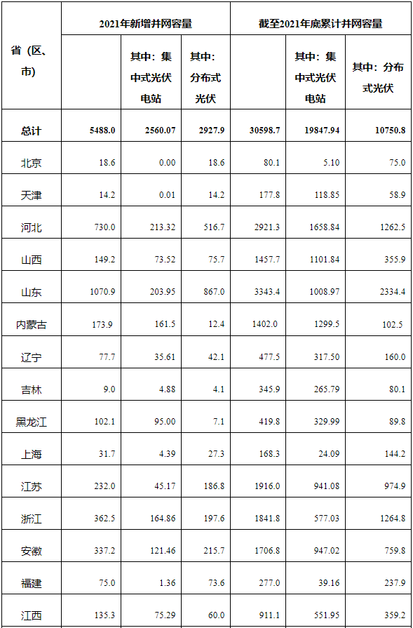 光伏新增并網(wǎng)54.88GW!,分布式29.279GW!國(guó)家能源局公布2021年光伏發(fā)電建設(shè)運(yùn)行情況