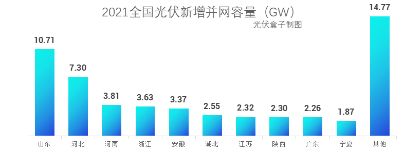 其中,2021新增裝機(jī)容量排名前3的省份分別是山東省(10.71GW)、河北省(7.3GW)、河南省(3.81GW)。