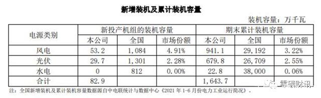 去年6月上市的三峽能源是國內(nèi)新能源運營商龍頭。公告顯示,截至2021年6月30日,三峽能源投產(chǎn)裝機容量合計達到16.44.GW。其中,風(fēng)電9.41GW、光伏發(fā)電6.8GW。公司在建項目的裝機容量合計5.23GW。其中,風(fēng)電項目4.5GW、光伏發(fā)電項目722MW。