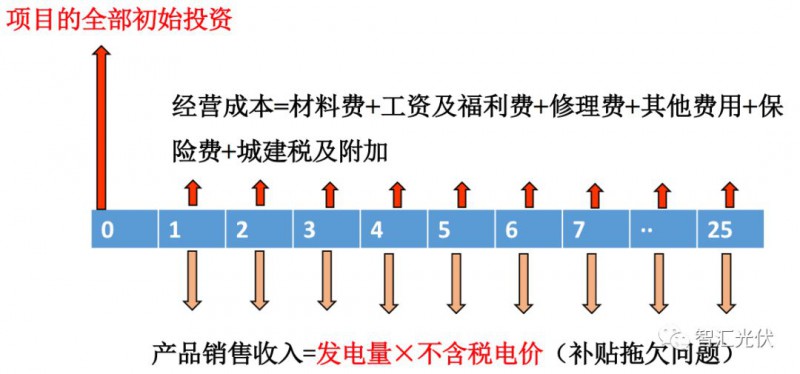 項目全部投資內(nèi)部收益率,即凈現(xiàn)金流為零時的折現(xiàn)值。項目的凈現(xiàn)金流表示如下圖所示。
