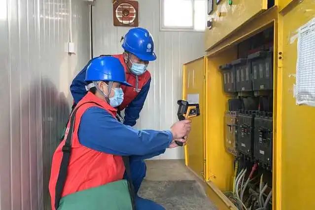 國網(wǎng)石家莊市鹿泉區(qū)供電公司黨員服務(wù)隊(duì)到千億級(jí)產(chǎn)業(yè)園區(qū)海康威視項(xiàng)目建設(shè)工地幫助檢查用電設(shè)備。張靜攝