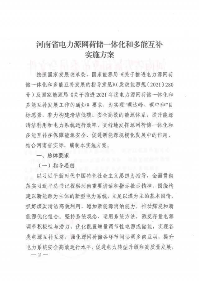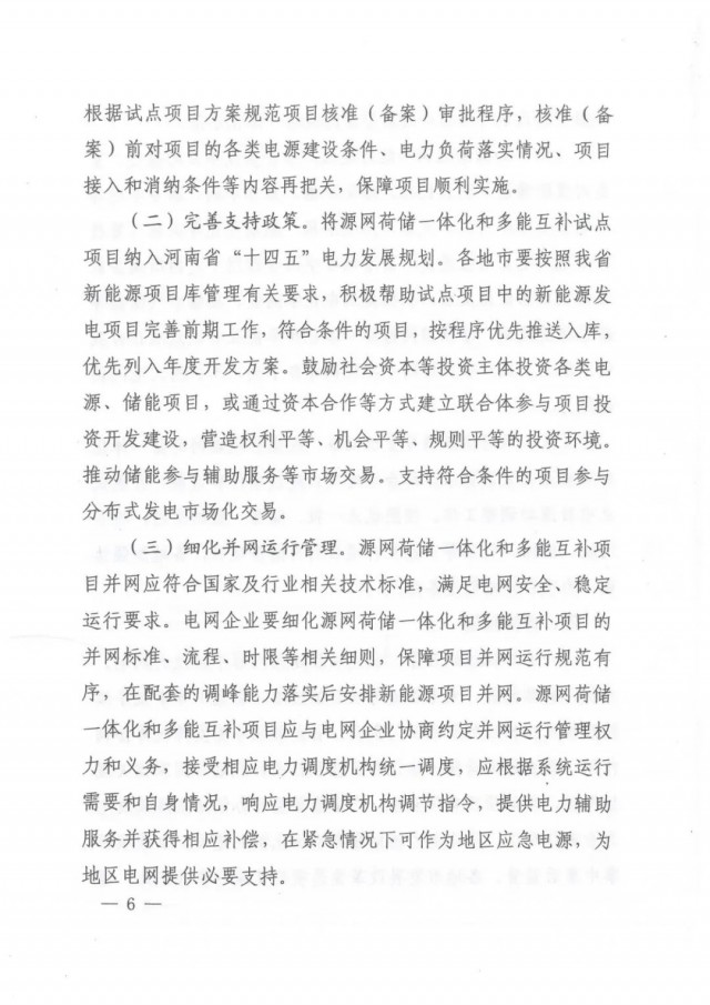 6月16日,河南省發(fā)改委印發(fā)《河南省電力源網(wǎng)荷儲一體化和多能互補實施方案》的通知,文件指出,要按照綠色優(yōu)先、協(xié)調(diào)互濟,試點先行、突出重點,就地就近、安全靈活,市場驅(qū)動、政策支持的基本原則,重點在新能源消納壓力大、資源條件較好和電力供應(yīng)緊張的地區(qū)開展項目試點,按照“成熟一批、推動一批"的模式分步推廣實施。到2025年,建成一批高比例消納新能源的多能互補和源網(wǎng)荷儲一體化示范項目。