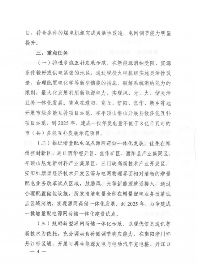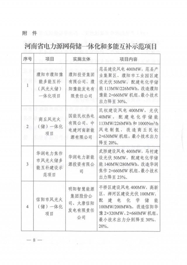 要重點推進多能互補發(fā)展示范,最大化發(fā)展利用新能源電力,實現(xiàn)風(fēng)、光、火、儲靈活互補一體化發(fā)展。重點在濮陽、商丘、信陽、焦作、新鄉(xiāng)等地開展市級多能互補項目示范,在平頂山魯山開展縣級多能互補項目示范,到2025年,建成一批年發(fā)電量不低于8億千瓦時的市(縣)多能互補發(fā)展示范項目。