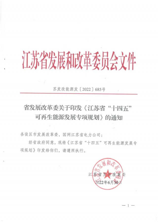 “十四五”期間,江蘇將穩(wěn)妥有序推進風電發(fā)展,優(yōu)化風電發(fā)展結構,重點發(fā)展海上風電,因地制宜發(fā)展光伏發(fā)電,全力推進分布式光伏發(fā)電,穩(wěn)步有序開展海上光伏建設,加快推進“光伏+”綜合利用,多元化發(fā)展生物質發(fā)電,科學推進抽水蓄能開發(fā),高效多元推動非電利用。到2025年,省內可再生能源占全省能源消費總量比重將達到15%以上,全省可再生能源裝機達到6600萬千瓦以上,占總裝機比重超過34%。其中,風電裝機達到2800萬千瓦以上,光伏發(fā)電裝機達到3500萬千瓦以上,生物質發(fā)電裝機達到300萬千瓦以上。