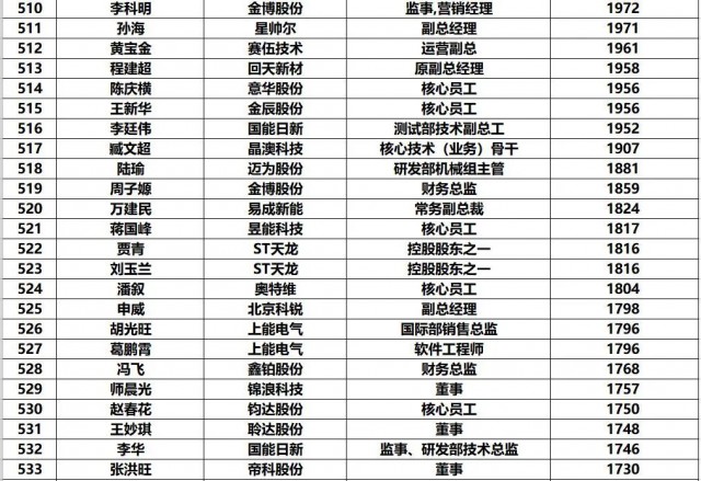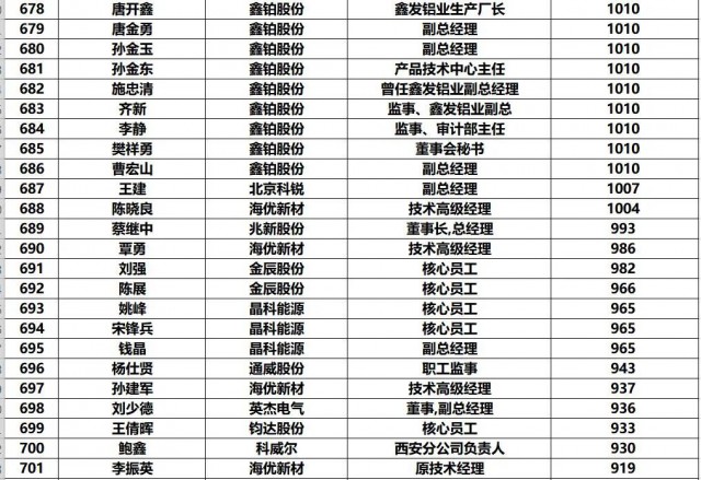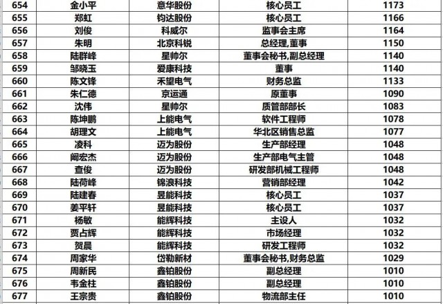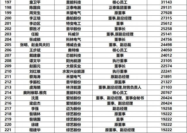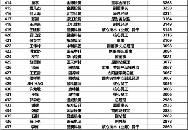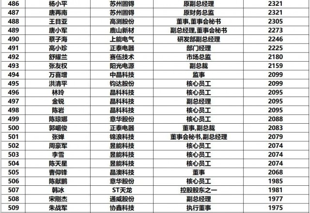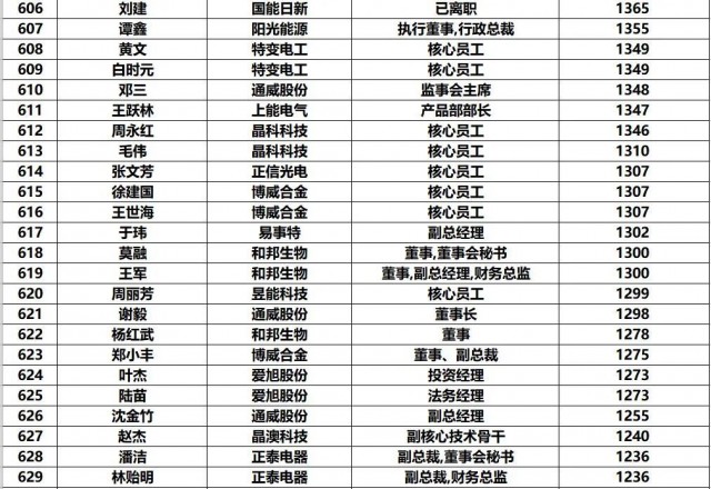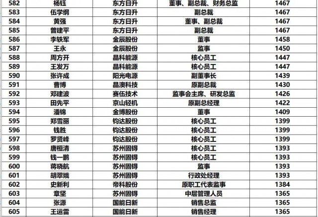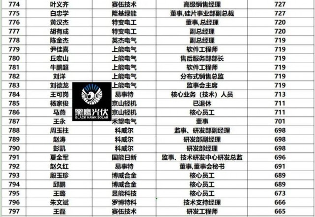黑鷹團隊制作此次榜單的方法:第一,此次統(tǒng)計的財富榜,是以光伏上市公司實時披露的前十大股東和高管持股數(shù)據(jù)為基礎(chǔ),乘以2022年7月4日企業(yè)收盤價計算得出,并不包含相應上市企業(yè)股票價值(通常這也是相關(guān)人的核心財富)以外的財富。第二,《2022年中國光伏富豪榜TOP1000》涵蓋光伏企業(yè)實際控制人、現(xiàn)任公司高管/原高管、集團公司高管等核心光伏從業(yè)人員,其他諸如財務投資者、或者二級市場投資者未計算在內(nèi)。第三,黑鷹團隊實際統(tǒng)計到的人數(shù)近1500人,最終擇取了前1000人。