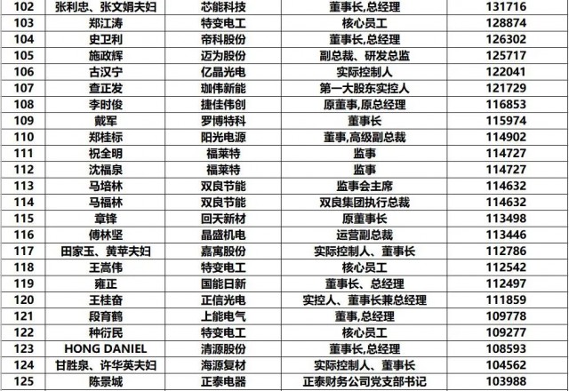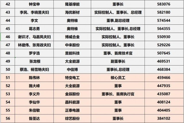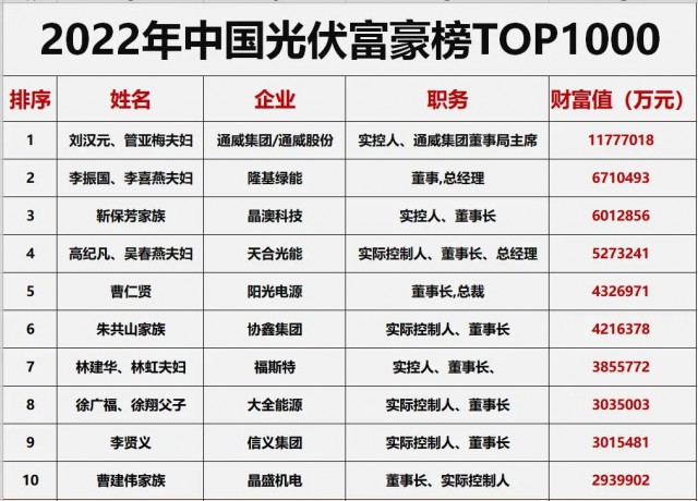 2022中國光伏財富榜TOP10依次為: