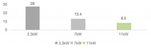 基于90kWh電池包,不同充電功率充電速度對比