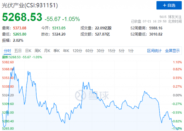 7月21日,光伏板塊延續(xù)分化行情,HJT概念股漲幅居前,而逆變器、硅料、硅片概念股跌幅居前。受此影響,中證光伏產(chǎn)業(yè)指數(shù)(CSI:931151)報收5269點,收跌1.05%。