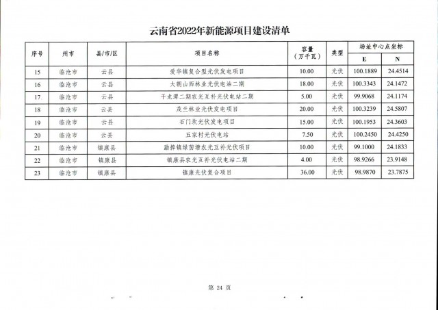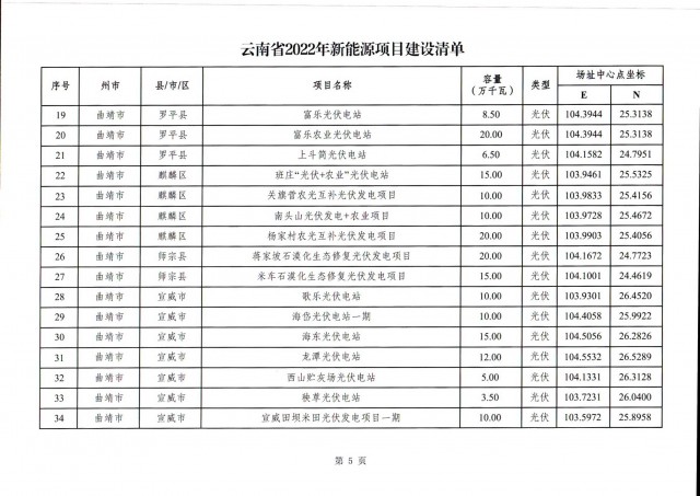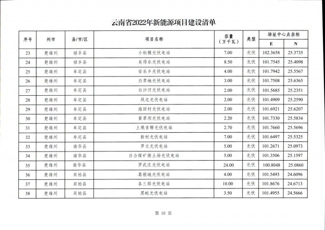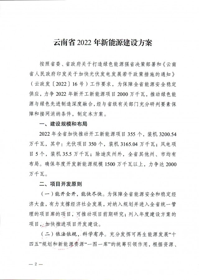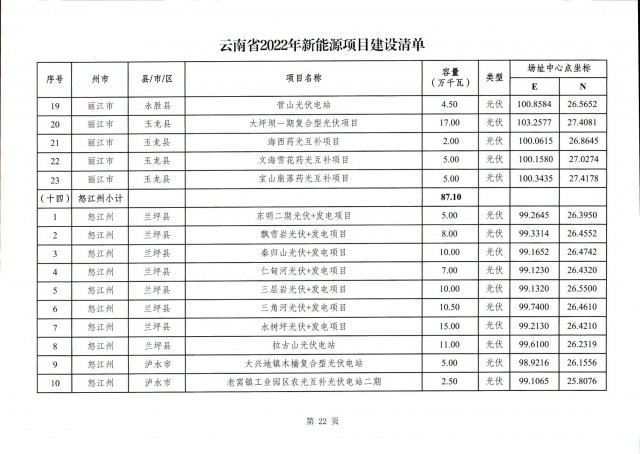 事實(shí)上,此前7月12日云南省能源局就發(fā)布了《關(guān)于征求2022年新能源建設(shè)方案》和《關(guān)于征求2022年新能源項(xiàng)目投產(chǎn)并網(wǎng)有關(guān)意見建議的函》,文件中云南省公示了共1702.04萬千瓦的新能源投產(chǎn)并網(wǎng)的項(xiàng)目清單,其中光伏975.6萬千瓦,風(fēng)電726.44萬千瓦。(點(diǎn)擊查看:云南17GW新能源并網(wǎng)項(xiàng)目清單:三峽、華能領(lǐng)銜,云南能投、華電、大唐等超1GW)此次正式下發(fā)的文件做出了一些變動(dòng)。