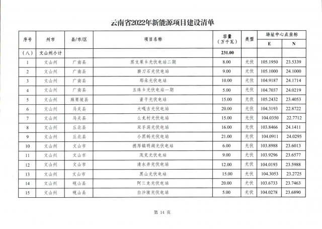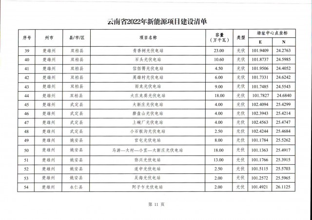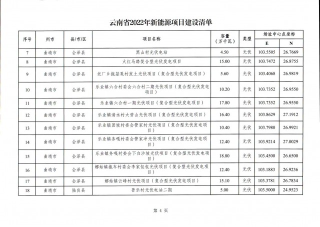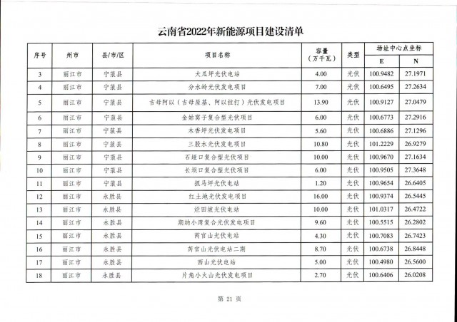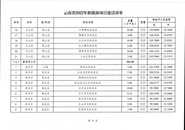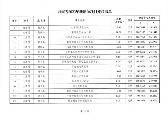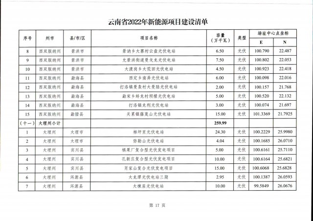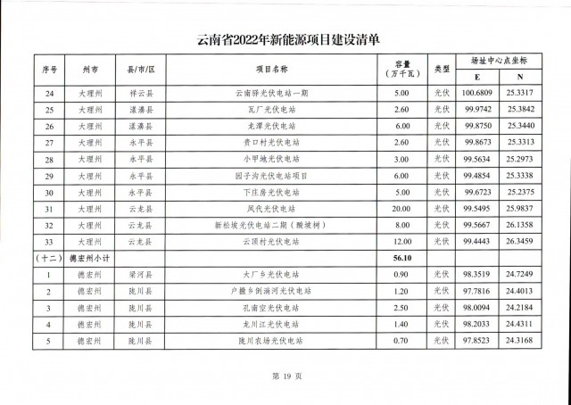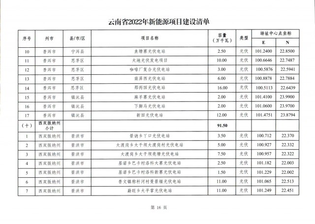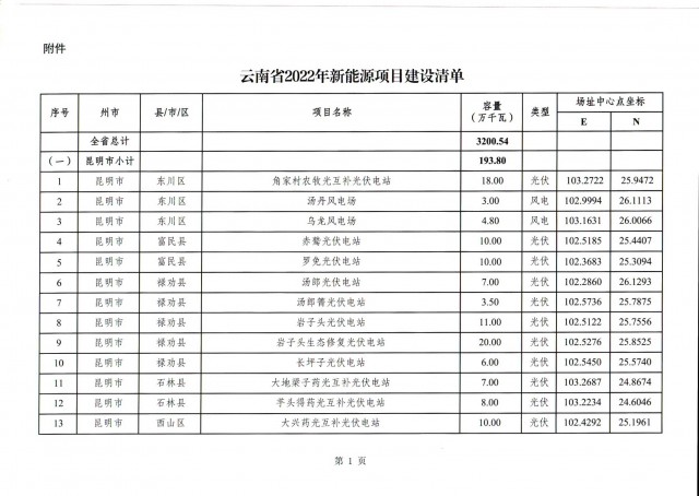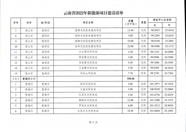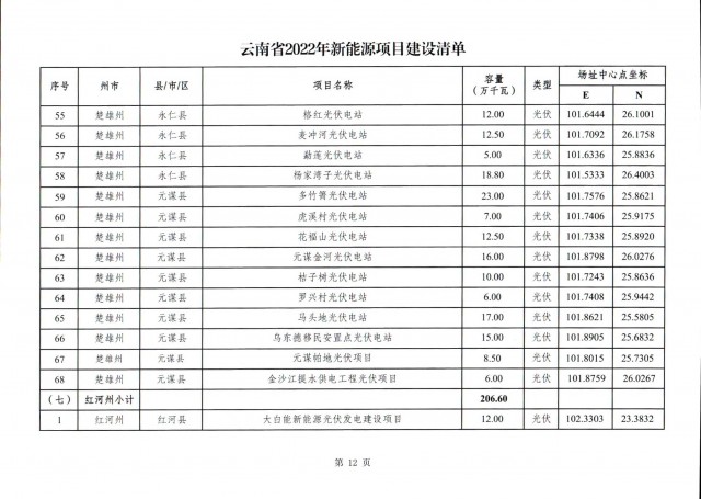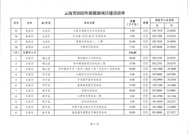根據(jù)項(xiàng)目清單來看(附件查看清單),昆明市193.8萬千瓦、昭通市129.9萬千瓦、曲靖市440.6萬千瓦、玉溪市216.89萬千瓦、保山市194.8萬千瓦、楚雄州556.46萬千瓦、紅河州206.6萬千瓦、文山州231萬千瓦、普洱市101.5萬千瓦、西雙版納州91.5萬千瓦、大理州259.99萬千瓦、德宏州56.1萬千瓦、麗江市163.3萬千瓦、怒江州87.1萬千瓦、臨滄市271萬千瓦。