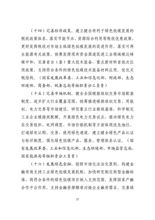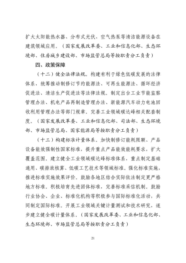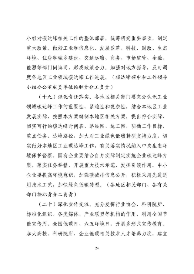 《工業(yè)領(lǐng)域碳達峰實施方案》已經(jīng)碳達峰碳中和工作領(lǐng)導小組審議通過,現(xiàn)印發(fā)給你們,請認真貫徹落實。