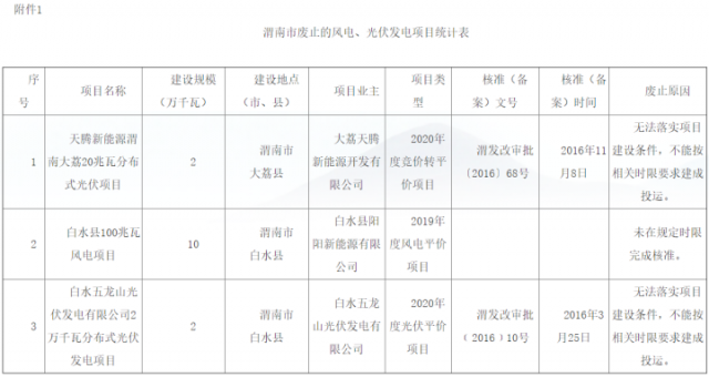 附件:1.渭南市廢止的風電、光伏發(fā)電項目統(tǒng)計表