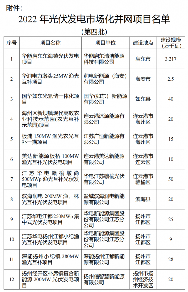 關(guān)于公布2022年光伏發(fā)電市場化并網(wǎng)項(xiàng)目(第四批)名單的通知