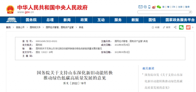 國務(wù)院關(guān)于支持山東深化新舊動(dòng)能轉(zhuǎn)換推動(dòng)綠色低碳高質(zhì)量發(fā)展的意見
