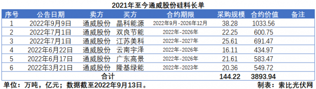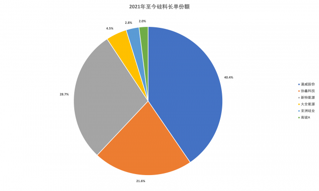 通過簽訂硅料長單、鎖定優(yōu)質(zhì)客戶,硅料三巨頭能夠有效規(guī)避市場瘋狂擴(kuò)產(chǎn)、競爭加劇對自身出貨量的影響,同時(shí)也能夠有效消化自身的新增產(chǎn)能,在高速增長的市場中保持甚至提升自身的市場份額。