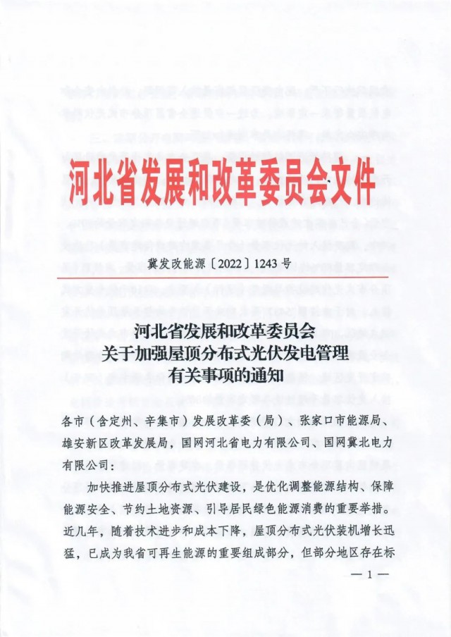 9月27日,河北省發(fā)改委發(fā)布《關(guān)于加強(qiáng)屋頂分布式光伏發(fā)電管理有關(guān)事項(xiàng)的通知》,通知指出,部分地區(qū)存在標(biāo)準(zhǔn)規(guī)范執(zhí)行不嚴(yán)、配電變壓器超容量接入等問題,給供電安全和電能質(zhì)量帶來一定影響。為進(jìn)一步促進(jìn)全省屋頂分布式光伏科學(xué)有序安全發(fā)展,通知提出: