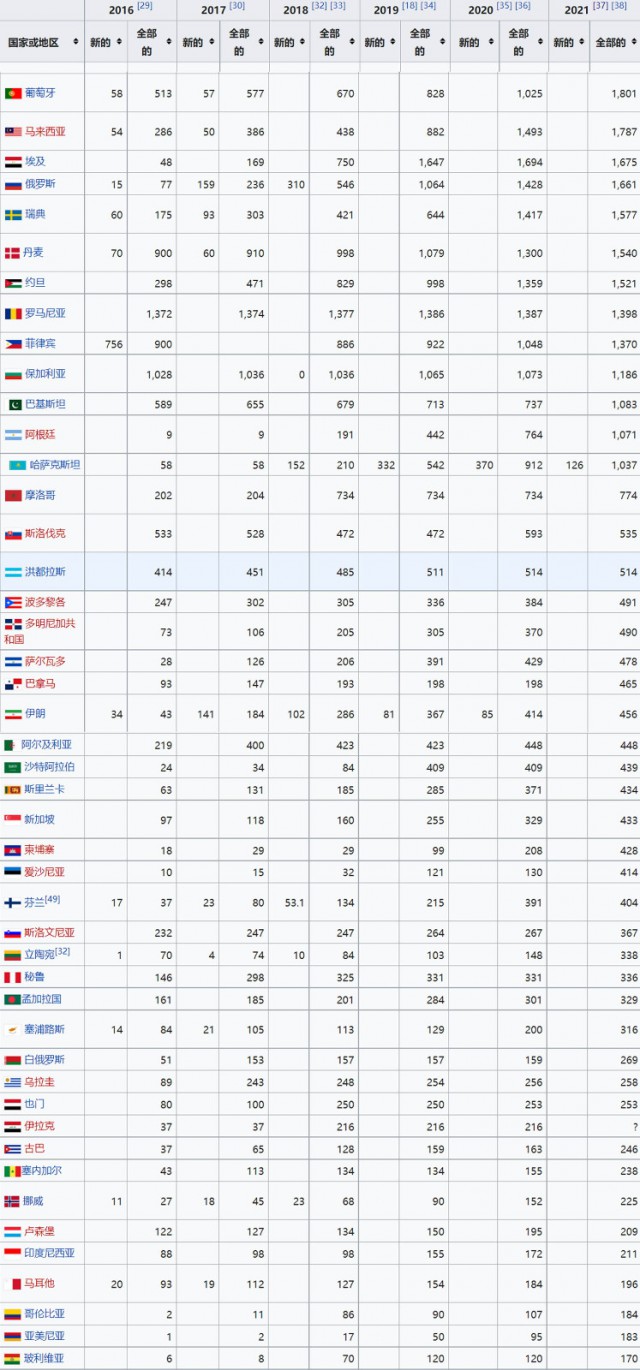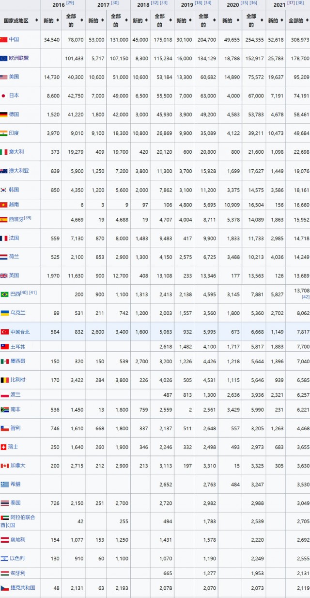 國際可再生能源署2021年度世界各國光伏裝機(jī)統(tǒng)計(jì)(單位:MW)