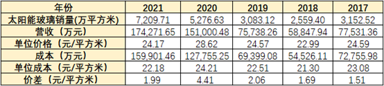 以3.2mm光伏玻璃為例。過(guò)去幾年,剔除異常波動(dòng)年份,加工后的光伏玻璃價(jià)格基本在25元/平米左右,原片價(jià)格約為15元/平米。價(jià)差10元/平米。