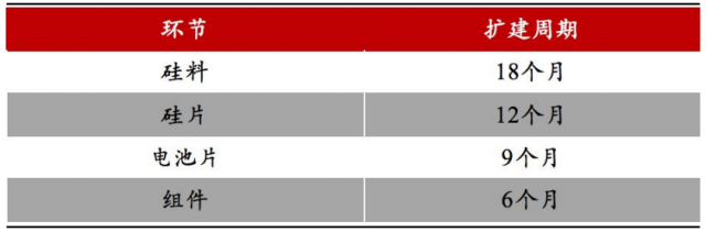 圖:光伏主產(chǎn)業(yè)鏈各環(huán)節(jié)擴(kuò)產(chǎn)周期,來源:各公司公告,東亞前海證券研究所