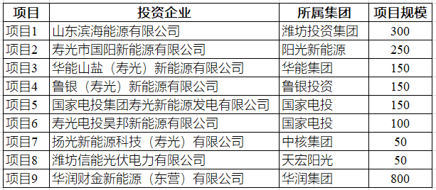 魯北鹽堿灘涂地千萬千瓦風(fēng)光儲一體化基地共分為9個項(xiàng)目,由華潤集團(tuán)、濰坊投資集團(tuán)、陽光電源、國家電投、華能集團(tuán)等企業(yè)聯(lián)合開發(fā)