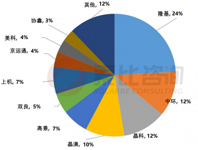 圖:2022年9月中國(guó)光伏硅片生產(chǎn)企業(yè)產(chǎn)出份額