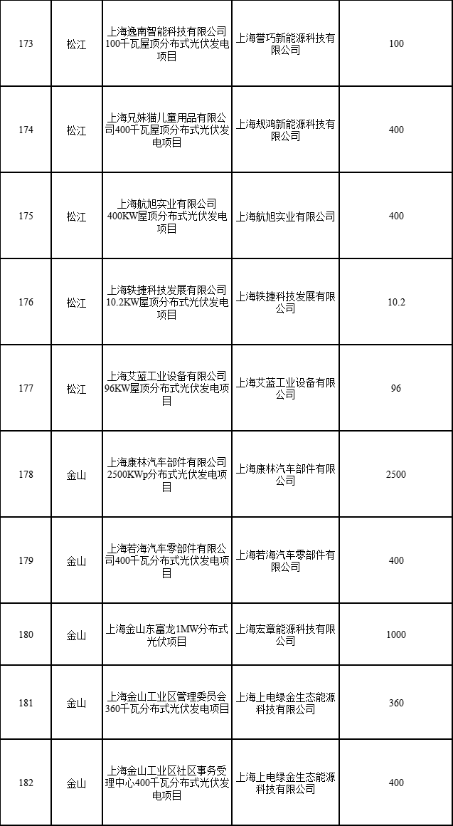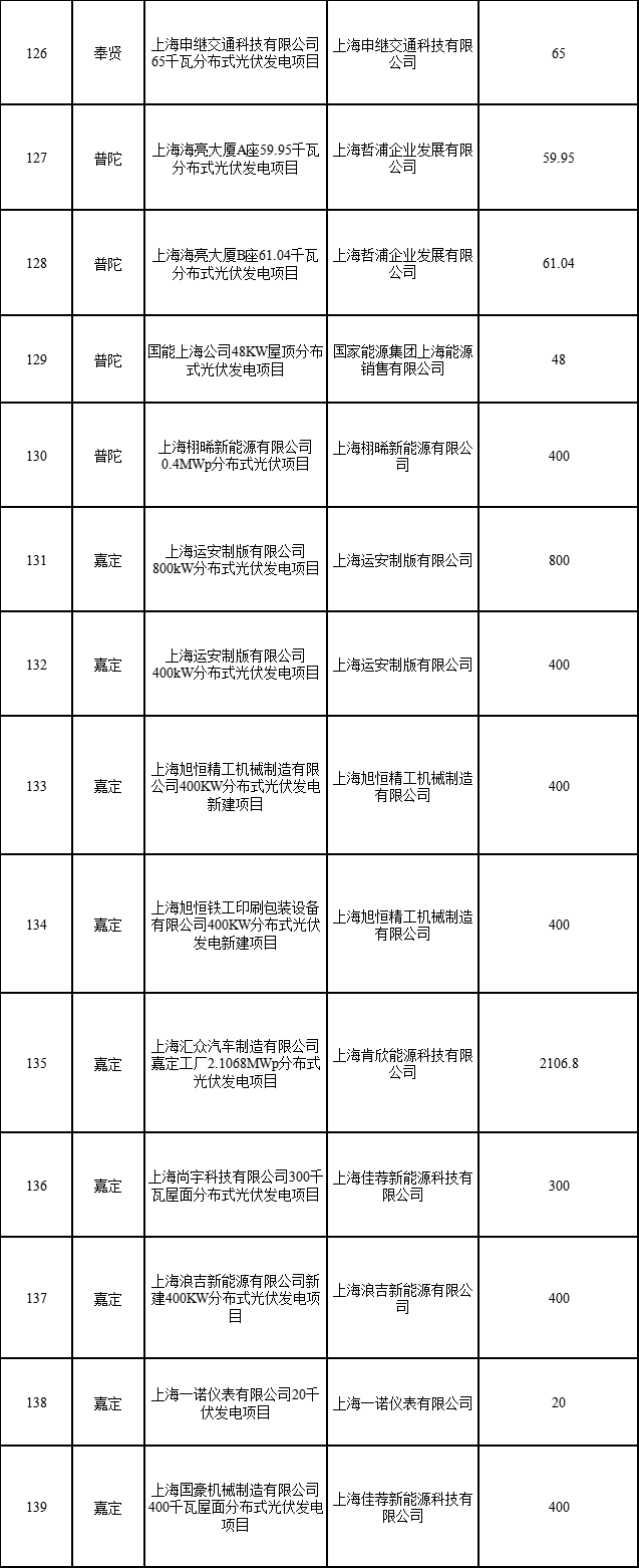 日前,上海市發(fā)展改革委公布2022年第二批可再生能源和新能源發(fā)展專(zhuān)項(xiàng)資金獎(jiǎng)勵(lì)目錄的通知,通知指出,共有1775個(gè)項(xiàng)目納入獎(jiǎng)勵(lì)目錄,總裝機(jī)容量249376.418千瓦。其中,海上風(fēng)電項(xiàng)目1個(gè)(合計(jì)45500千瓦)、光伏電站項(xiàng)目1個(gè)(3499.97)、企業(yè)分布式光伏項(xiàng)目315個(gè)(合計(jì)183784.37千瓦)、居民光伏項(xiàng)目1458個(gè)(合計(jì)16592.078千瓦)。
